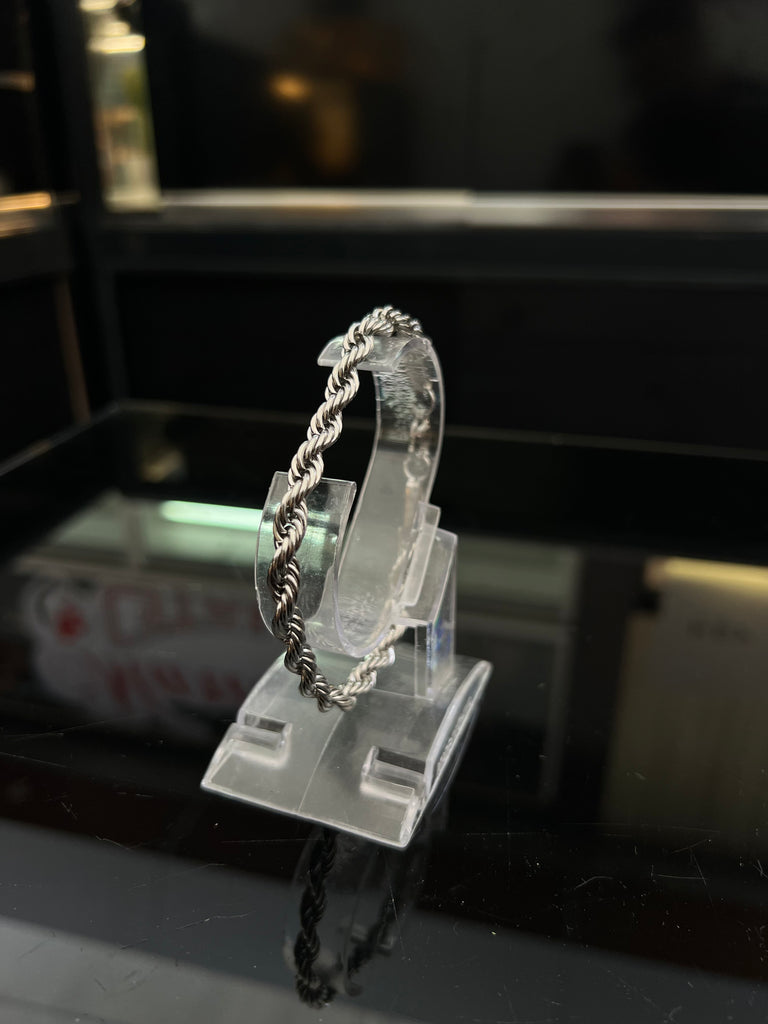 Ajoutez une touche d’élégance et de modernité à votre style avec ce bracelet en acier argenté au design torsadé. Ses fils entrelacés créent un effet unique, alliant robustesse et raffinement.